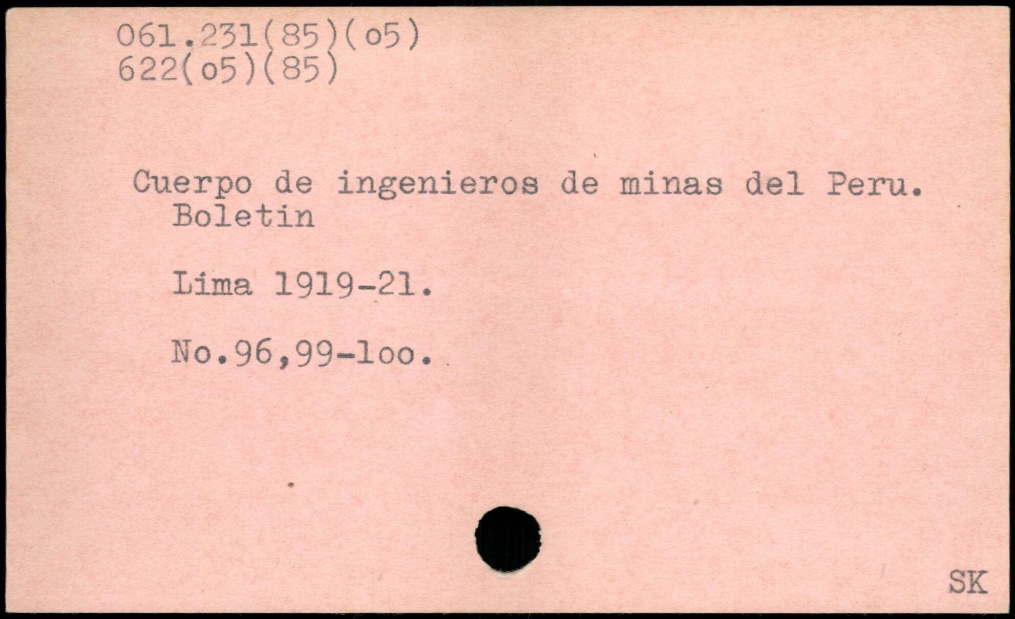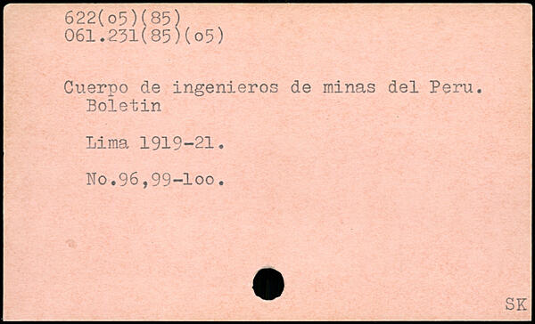 Cuerpo de ingenieros de minas del Peru. Boletin Lima 1919-21. No.96,99-100. ® SK