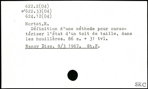 Définition d'une méthode pour caractériser l’état d’un toit de taille, dans les houillères.