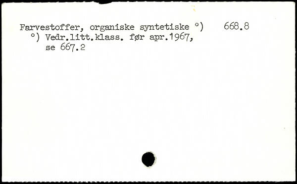 Farvestoffer, organiske syntetiske .) 668.8 .) Vedr.litt.klass. før apr.1967, se 667.2