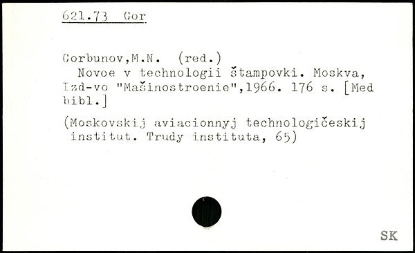 Novoe v technologii stampovki. Moskva, Izd-vo "Masinostroenie",1966.