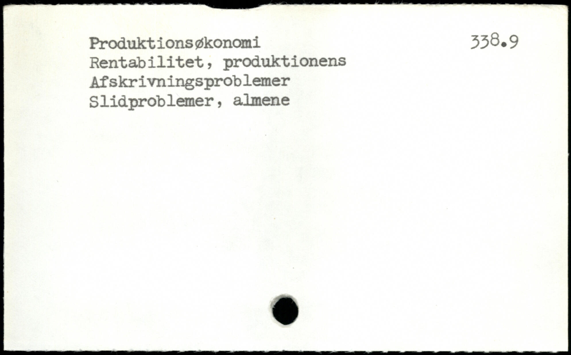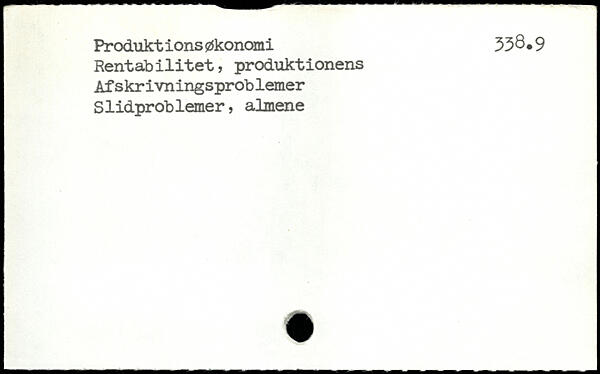 Produkt ions økonomi 338.9 Rentabilitet, produktionens Afskrivningsproblemer Slidproblemer, almene