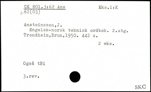 Engelsk-norsk teknisk ordbok. 2.utg.