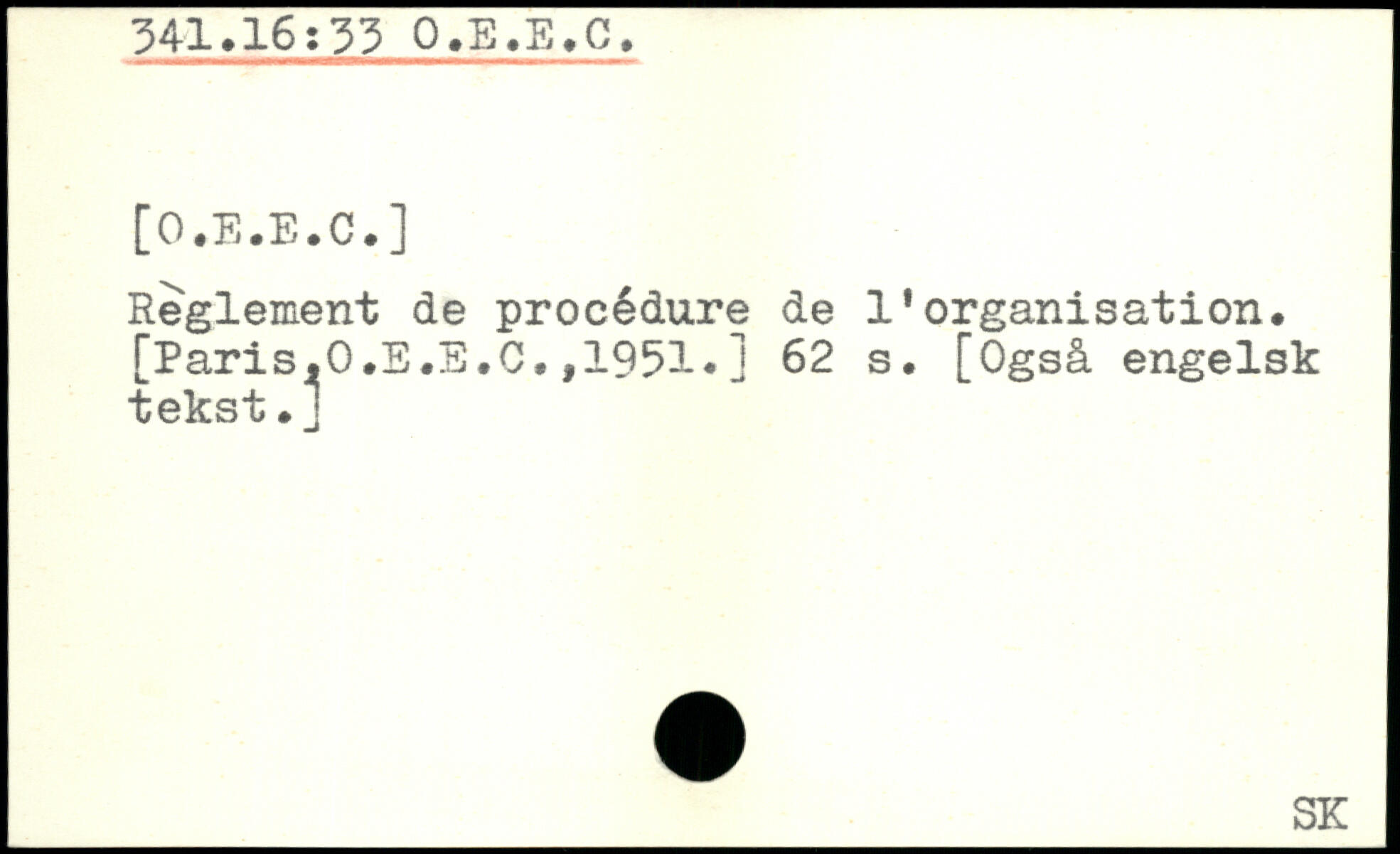Reglement de procédure de l'organisation. [Paris.O.E.E.C,,1951.]