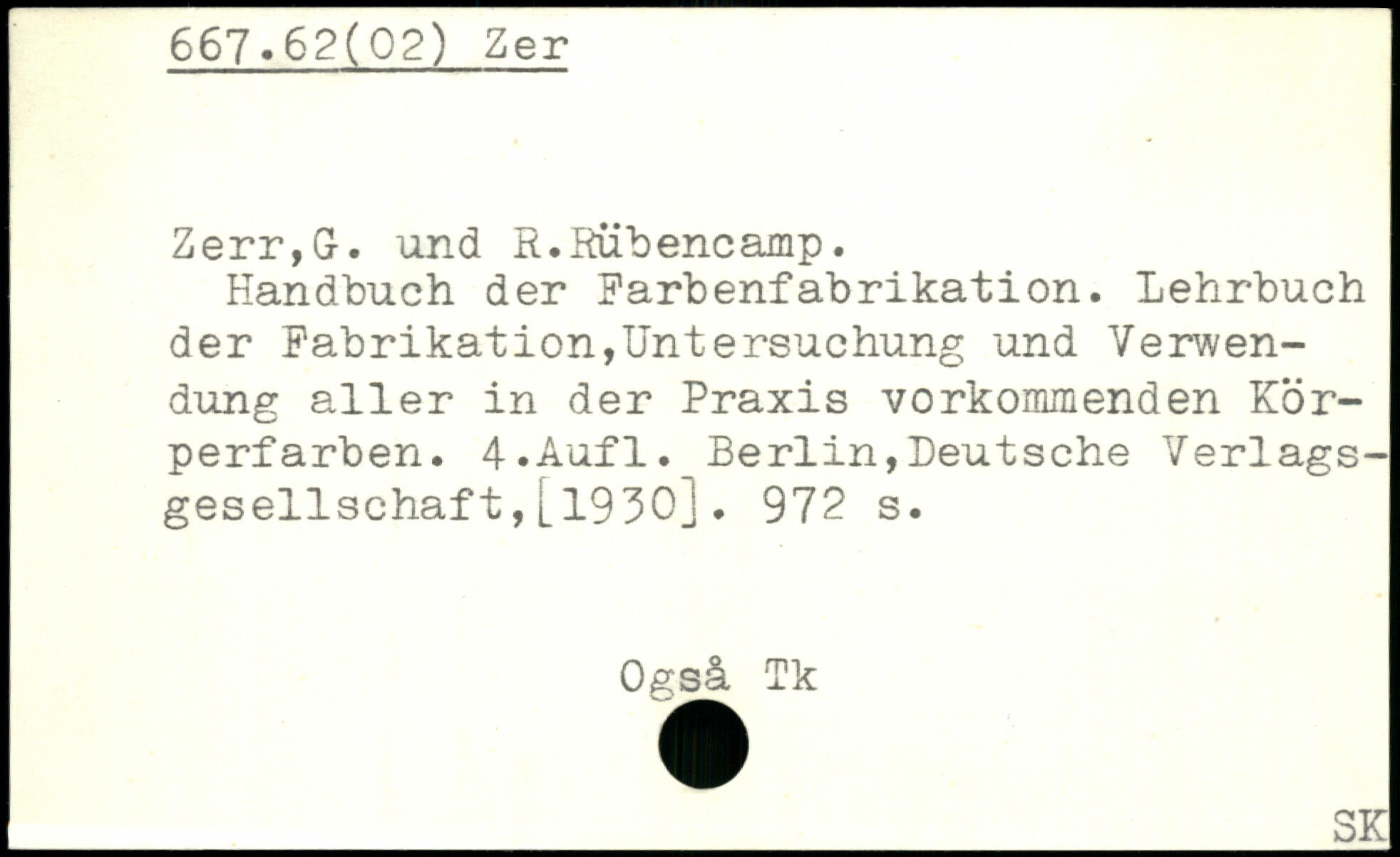 Zerr,G. und R.Rübencamp. Randbuch der Farbenfabrikation. Lehrbuch der Fabrikation,Untersuchung und Verwendung aller in der Praxis verkommenden Körperfarben.