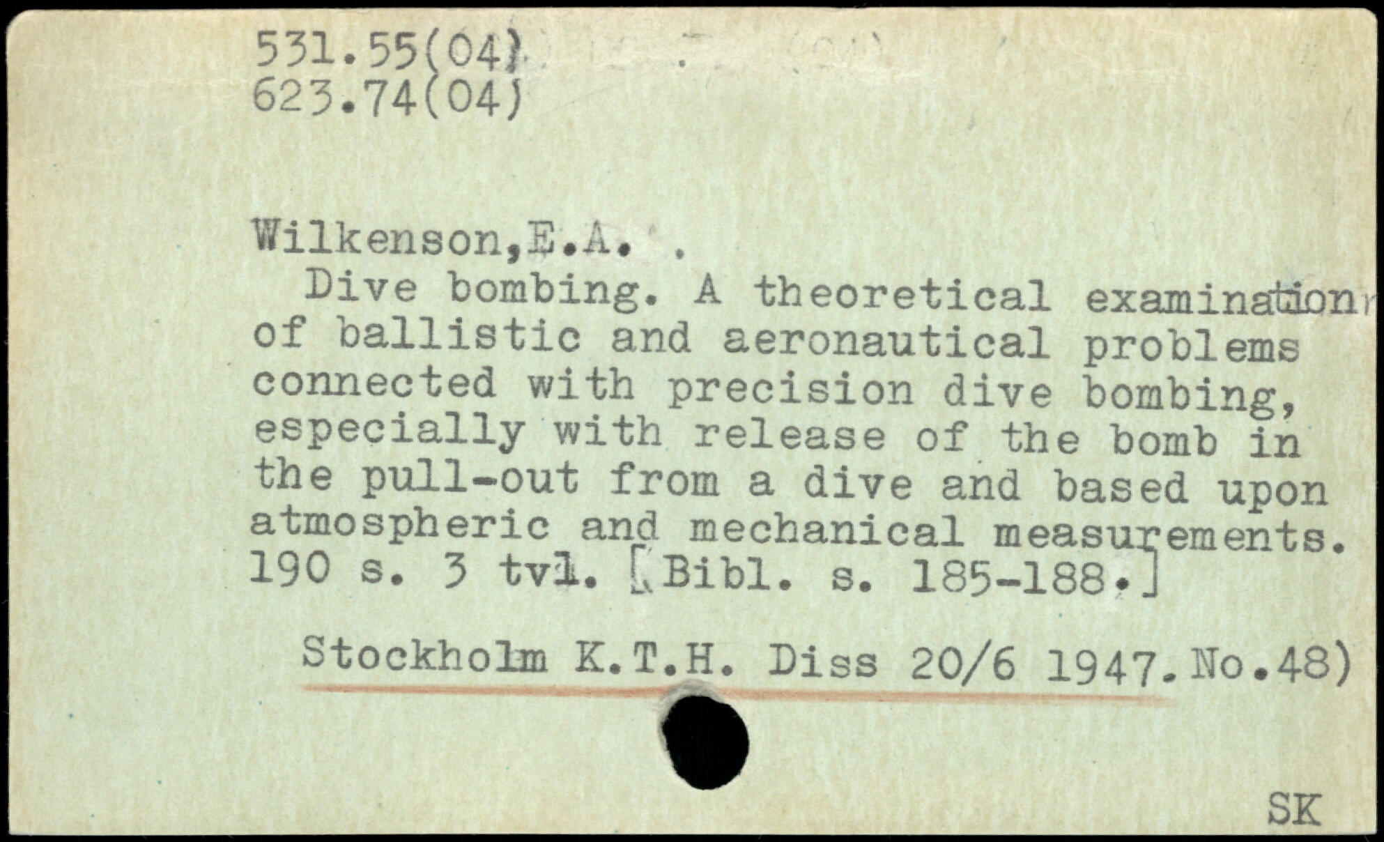 Dive bombing, A theoretical examination)-of ballistic and aeronautical problems connected with precision dive bombing, especially with release of the bomb in the pull-out from a dive and based upon atmospheric and mechanical measurements