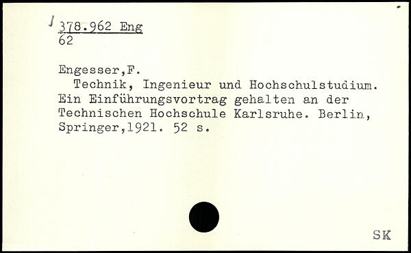 Technik, Ingenieur und Hochschulstudium. Ein Einfiihrungsvortrag gehalten an der Technischen Hochschule Karlsruhe.