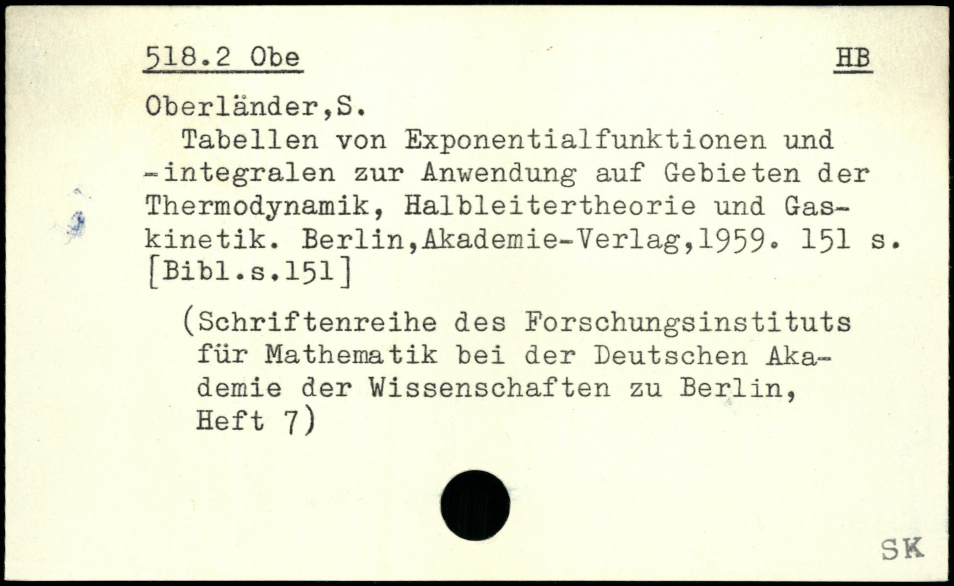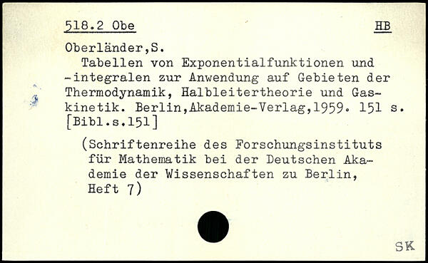 Tabellen von Exponentialfunktionen und -integralen zur Anwendung auf Gebieten der j Thermodynamik, Halbleitertheorie und Gaskinetik.