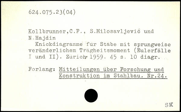 Kollbrunner,C,F., S.Milosavljevic und N.Hajdin Knickdiagramme für Stabe mit sprungweise veränderlichem Trägheitsmoment (Eulerfälle I und II). Zurici^ 1959 >