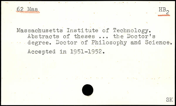 Massachusetts Institute of Technology. Abstracts of theses ... the Doctor's degree. Doctor of Philosophy and Science. Accepted in 1951-1952.