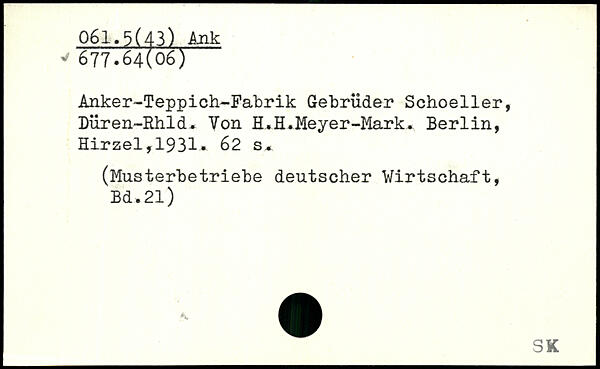 Anker-Teppich-Fabrik Gebrüder Schoeller, Düren-Rhld. Von H.H.Meyer-Mark.