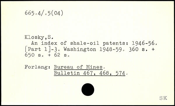 An index of shale-oil patents: 1946-56. | Part 1 ]—3.