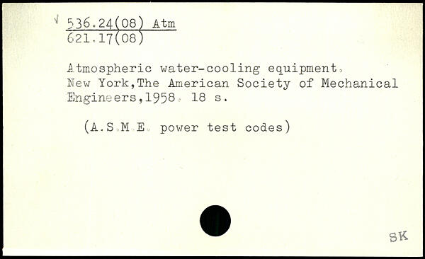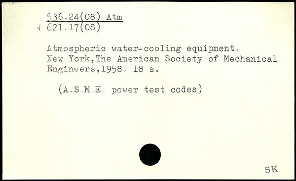 Atmospheric water-cooling equipment. New York,The American Society of Mechanical Engineers,1958