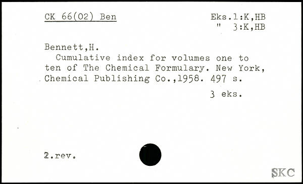 Cumulative index for volumes one to ten of The Chemical Formulary.