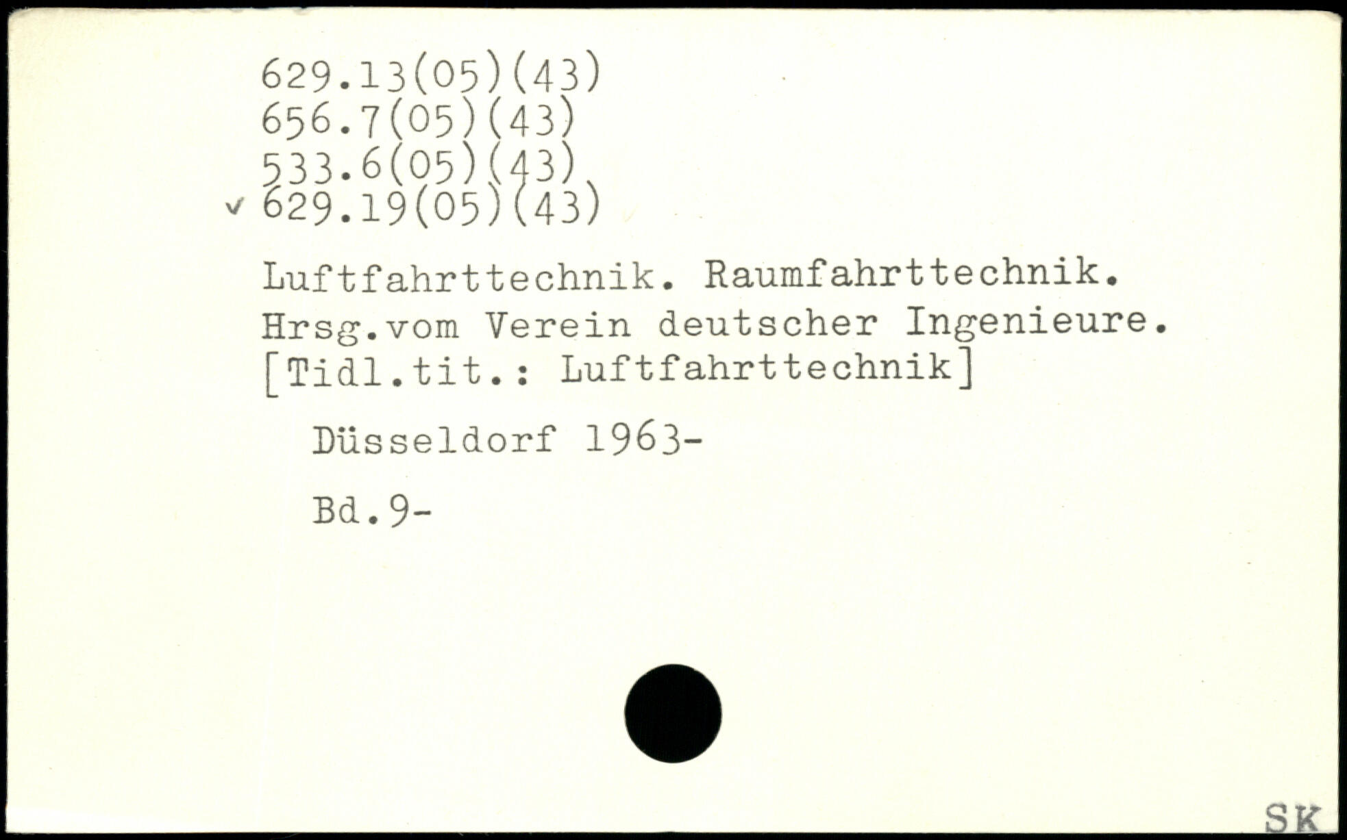 Luftfahrttechnik. Raumfahrttechnik. Hrsg.vom Verein deutscher Ingenieure. [Tidl.tit.: Luftfahrttechnik] Düsseldorf 1963-