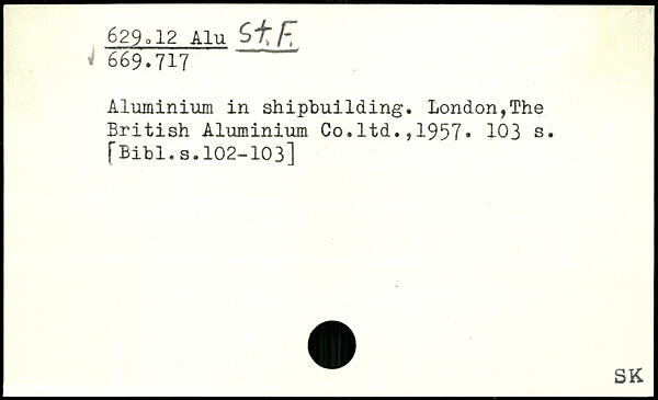 Aluminium in shipbuilding. London,The British Aluminium Co.ltd.,1957. 103 fBibl.s.102-103]