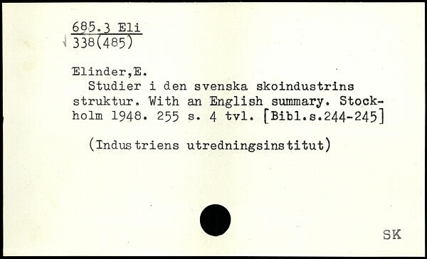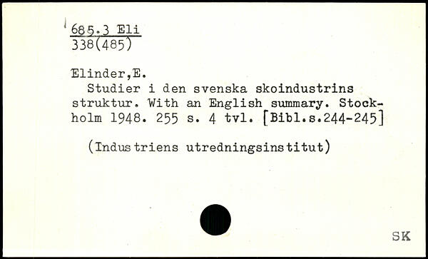 Studier i den svenska skoindustrins struktur. With an English summary.