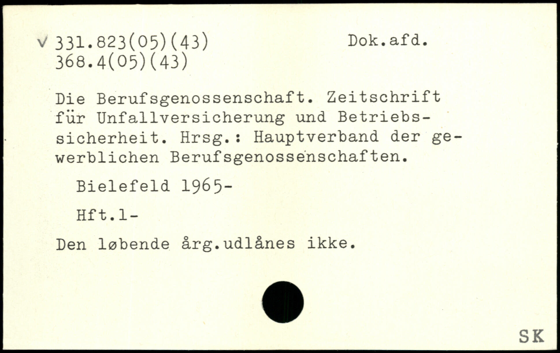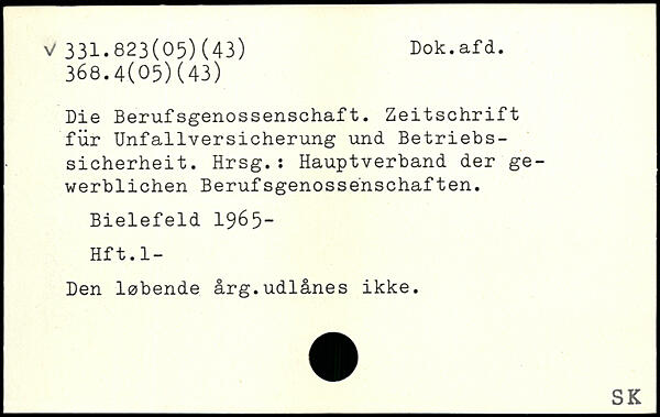 Die Berufsgenossenschaft. Zeitschrift für Unfallversicherung und Betriebssicherheit. Hrsg.: Hauptverband der gewerblichen Berufsgenossenschaften. Bielefeld 1965- Hft.l- Den løbende årg.udlånes ikke.