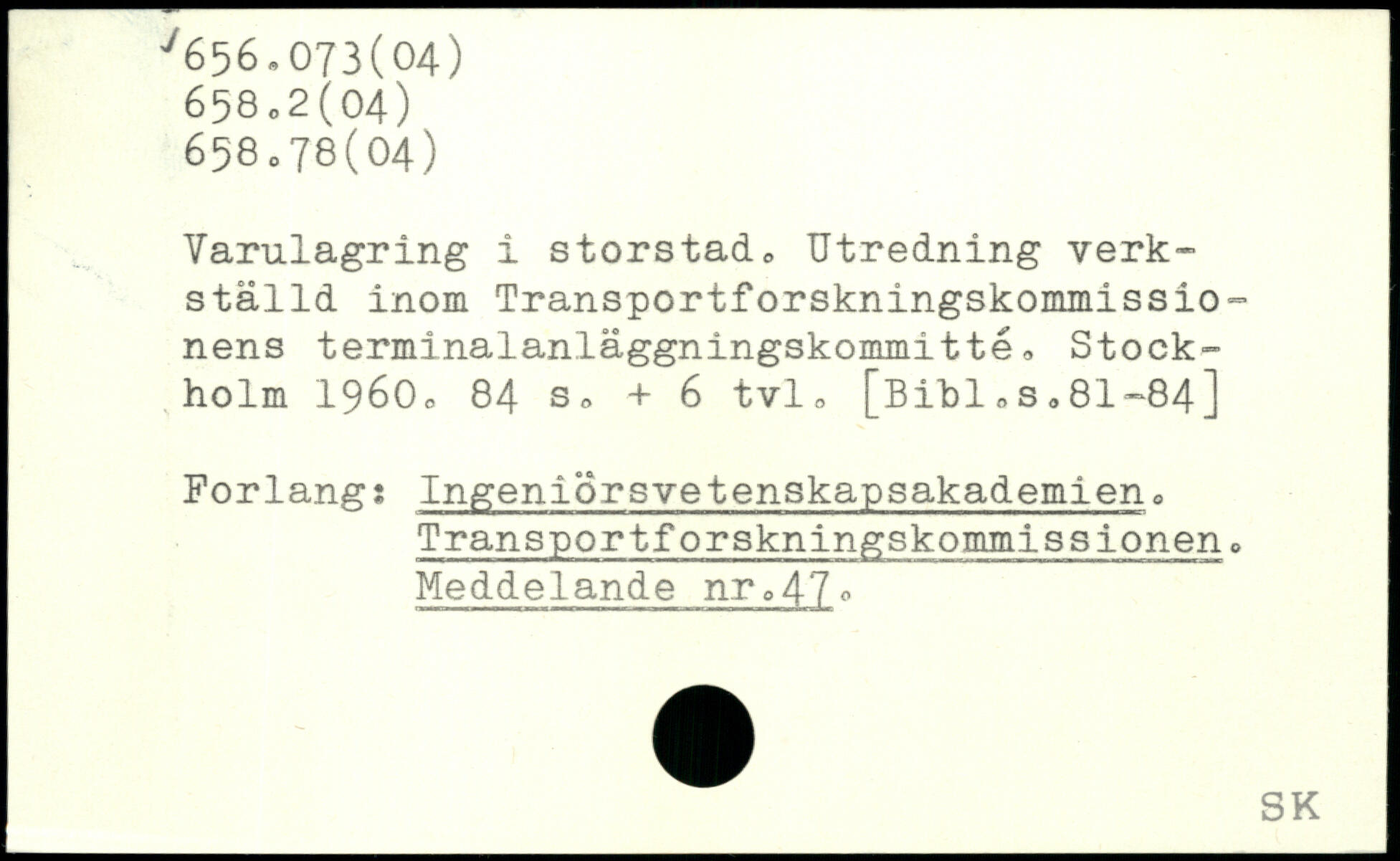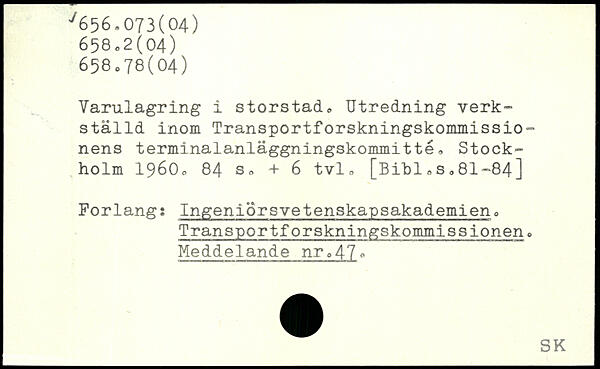 Varulagring i storstad, Utredning verkställd inom TransportforskningskommissiO“-nens terminalanläggningskommitté