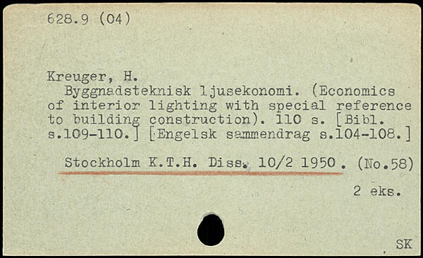 Byggnadsteknisk 1jusekonomi. (Economics of interior lighting with special reference to building construction).