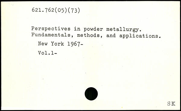 Perspectives in powder metallurgy. Fundamentals, methods, and applications.