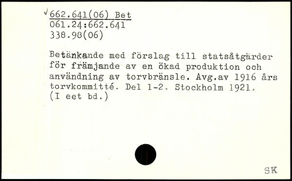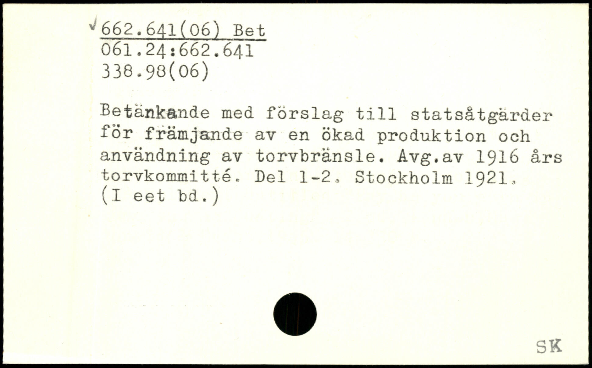 Betänkande med förslag till statsåtgäraer Bör främjande av en ökad produktion och användning av torvbränsle. Avg.av 1916 års torvkommitté. Del 1-2