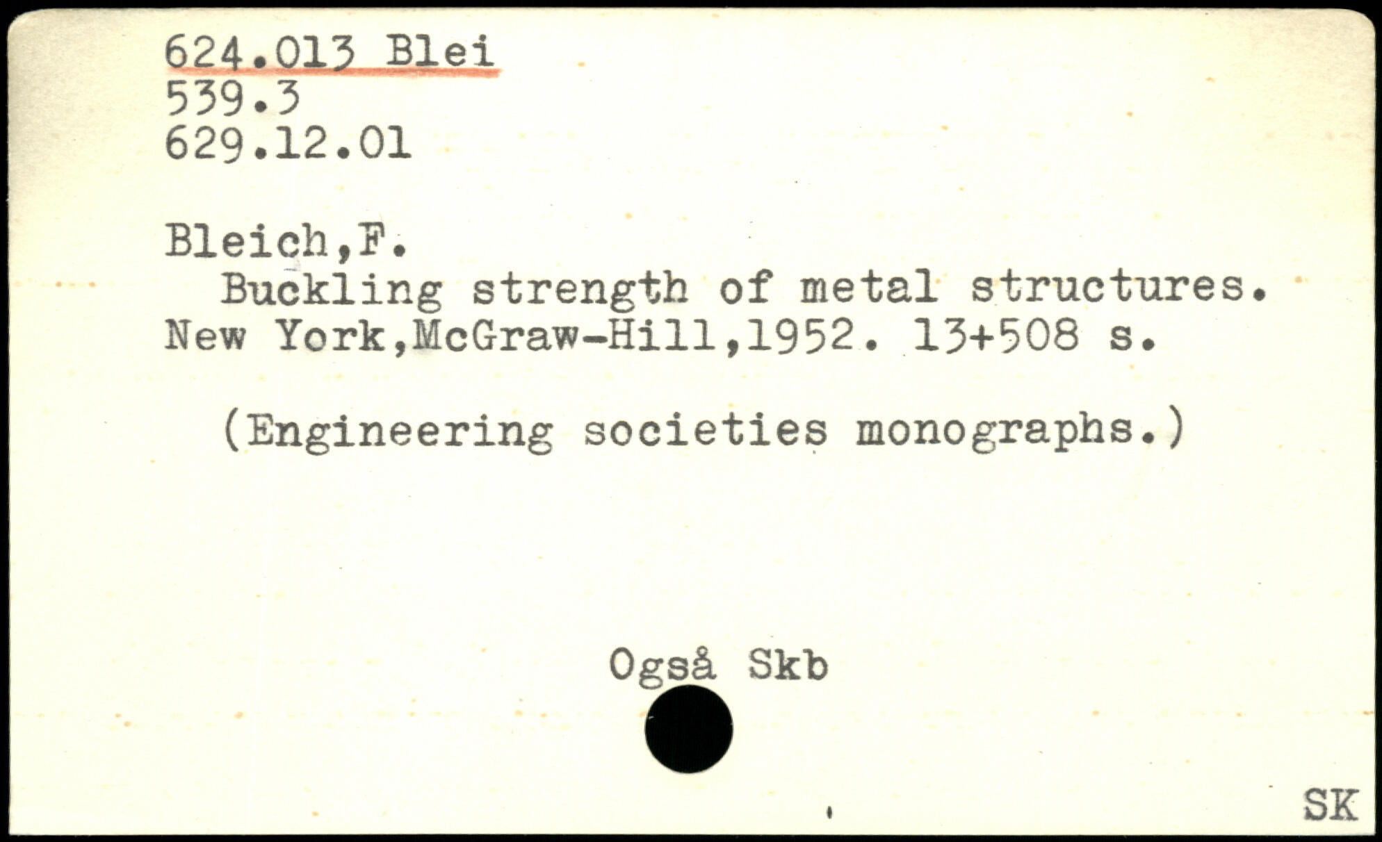 £lZL.S)U.....Blei 539.3 629.12.01 Bleich,?. Buckling strength of metal structures.