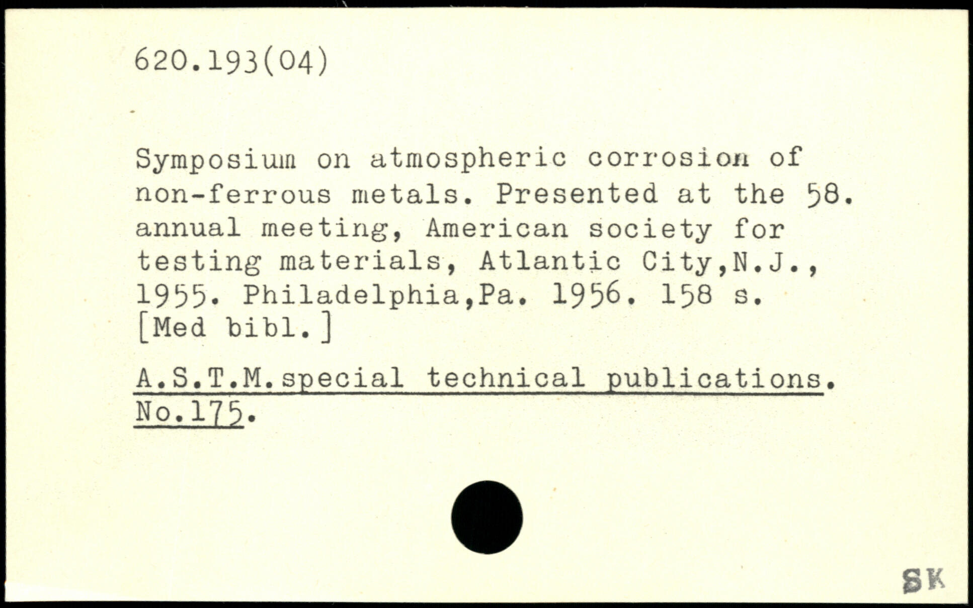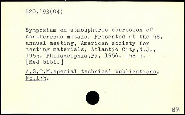 Symposium on atmospheric corrosion of non-ferrous metals. Presented at the 98. annual meeting, American society for testing materials