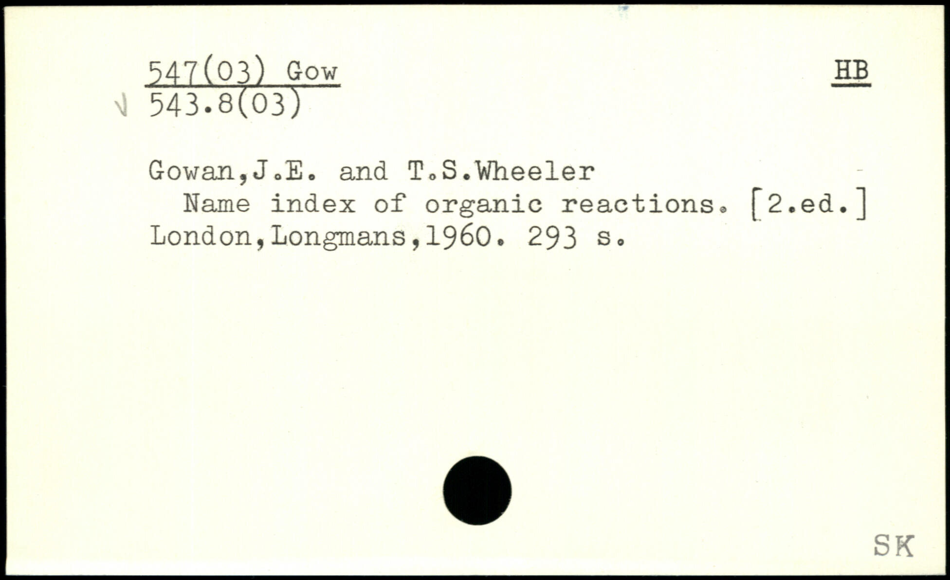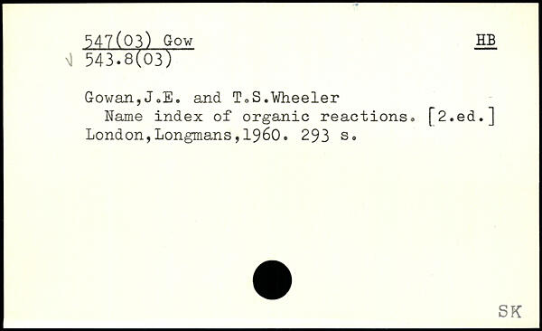 Gowan,J,E. and T,S.Wheeler Name index of organic reactions. [