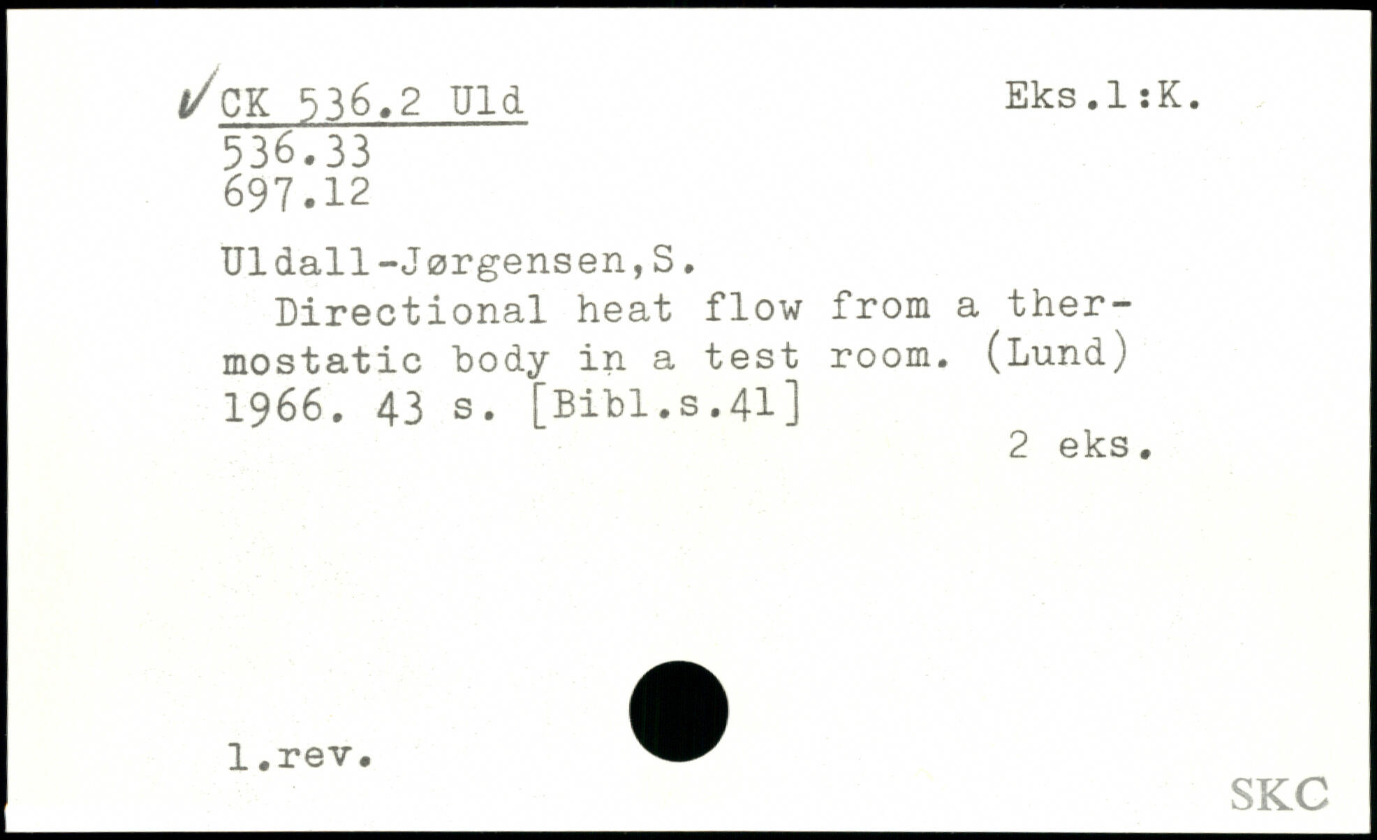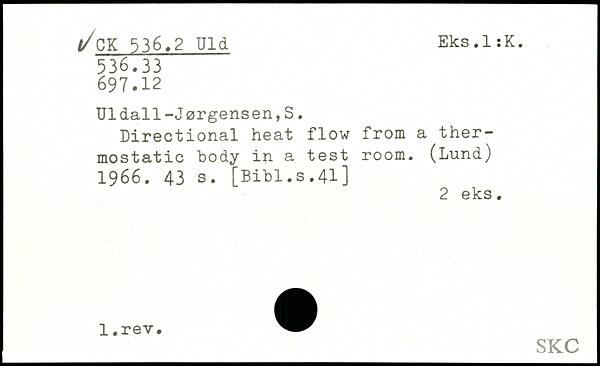 U1dail-Jørgensen,S♦ Directional heat flow from a thermostatic body in a test room. (Lund) 1966.