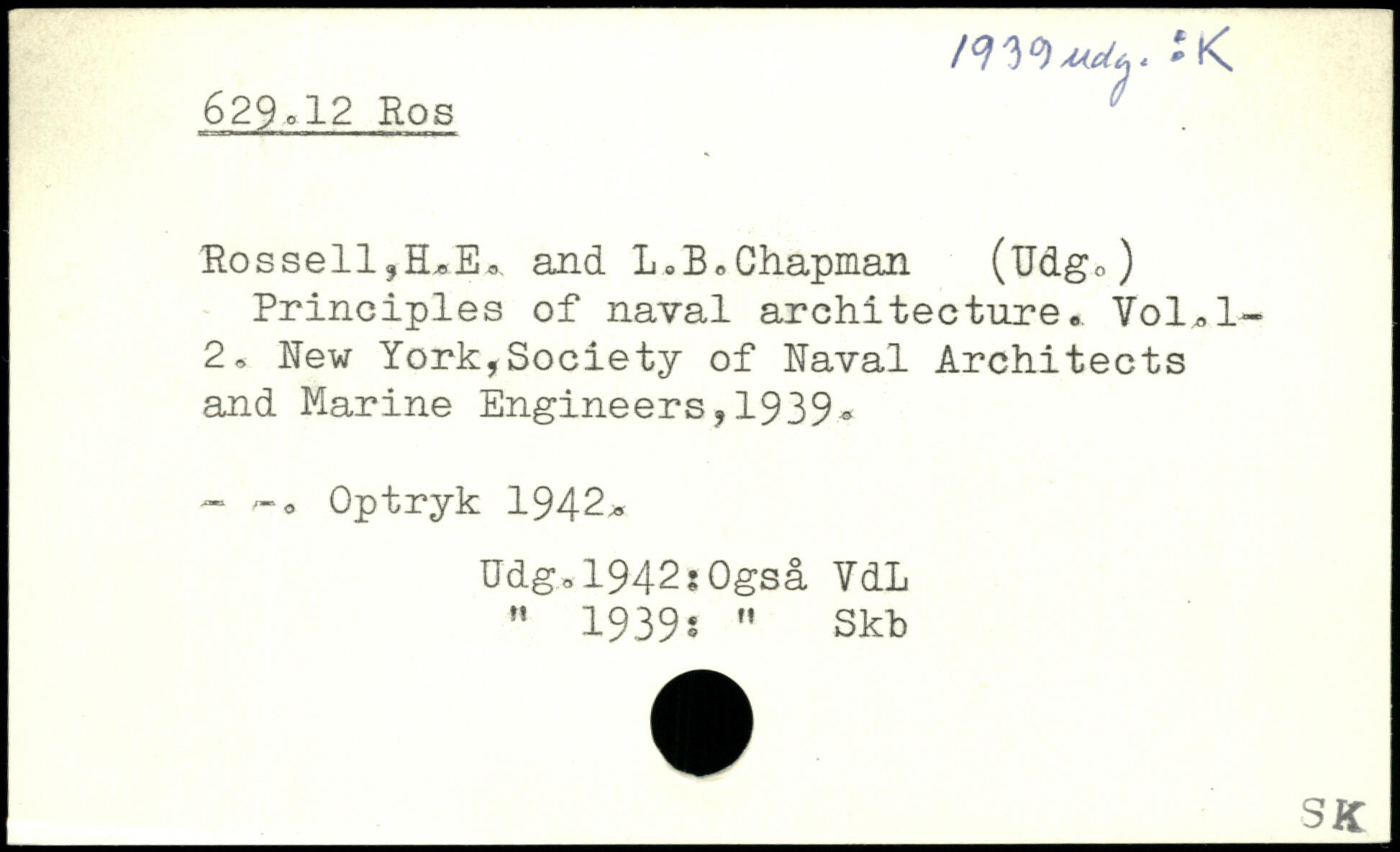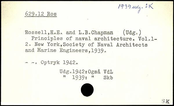 Principles of naval architecture.. Vol,l-2. New York,Society of Naval Architects and Marine Engineers,1939, - Optryk 1942. Udgo1942s0gsa YdL " 1939s " Skb