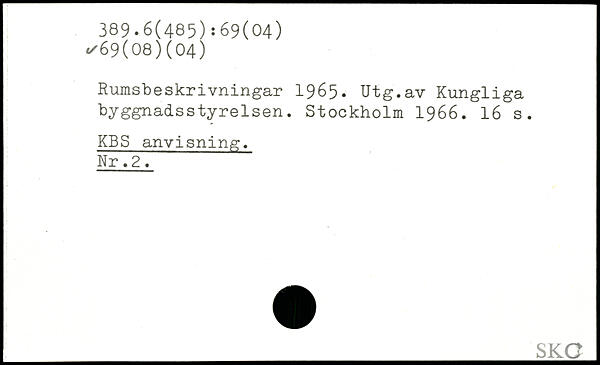 Rumsbeskrivningar 1965. Utg.av Kungliga byggnadsstyrelsen.