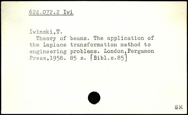 Theory of beams. The application of the Laplace transformation method to engineering problems. London,Pergamon Press,195S.