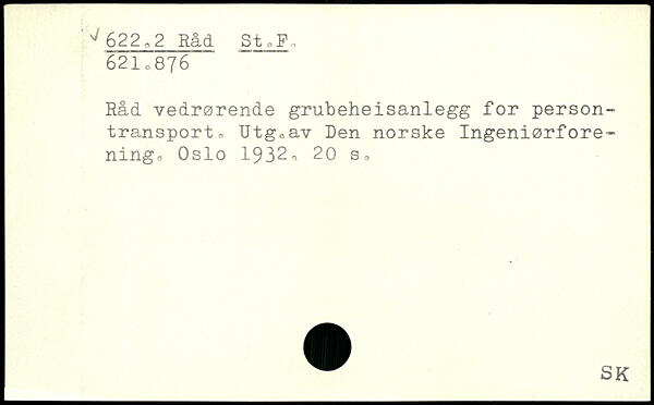 Råd vedrørende grubeheisanlegg for persontransport,. Utg0av Den norske Ingeniørforenings Oslo 1932o