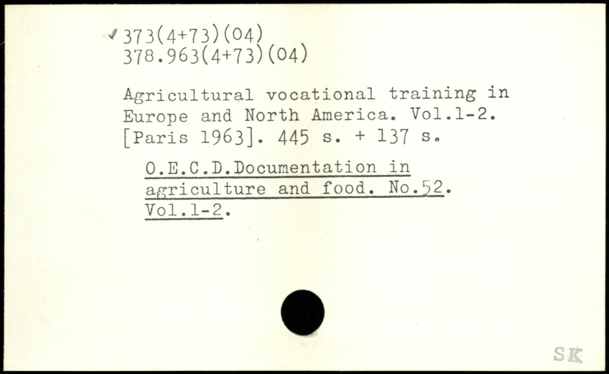 Agricultural vocational training in Europe and North America.