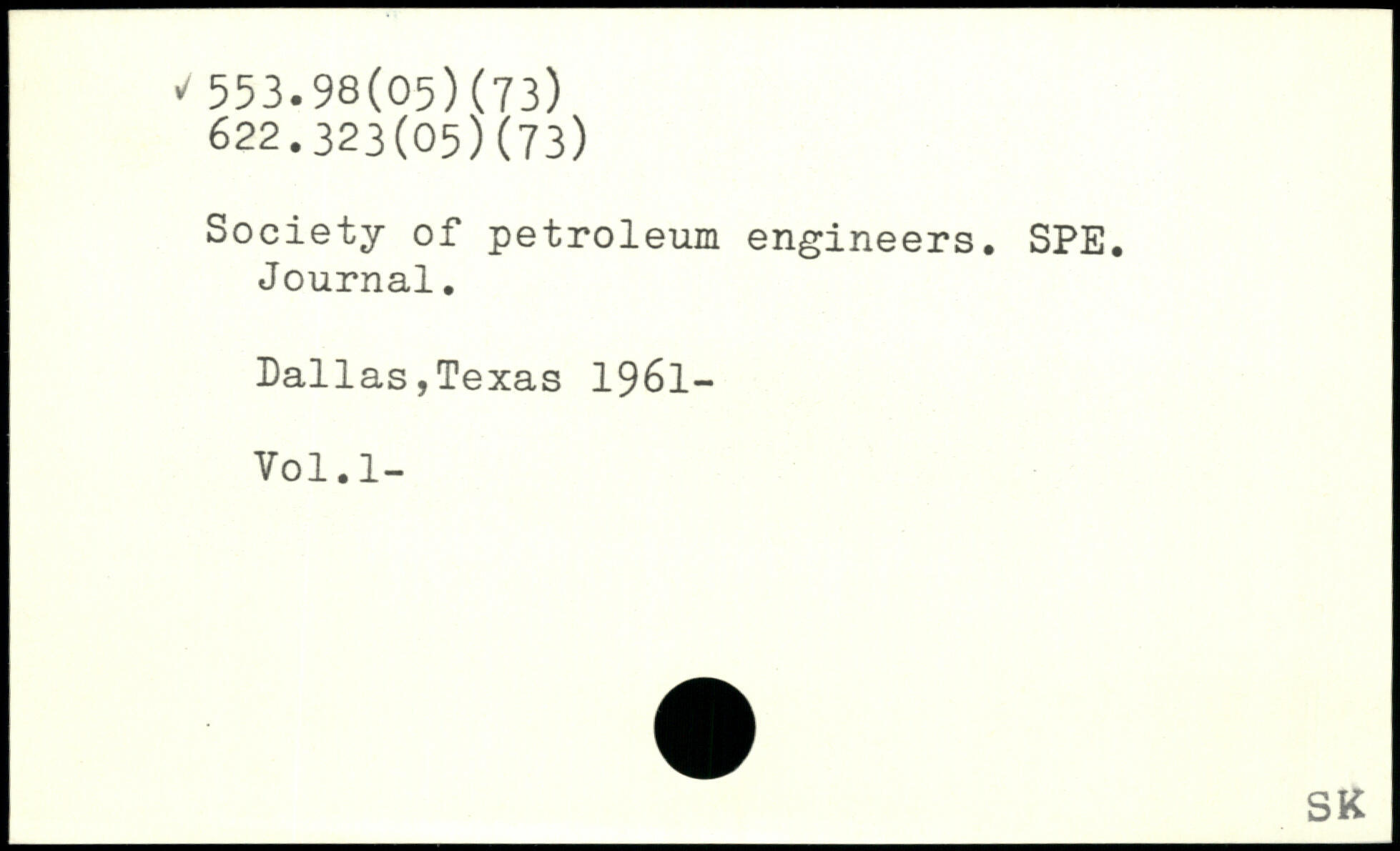 Society of petroleum engineers. SPE. Journal. Dallas,Texas 1961-Vol.l-