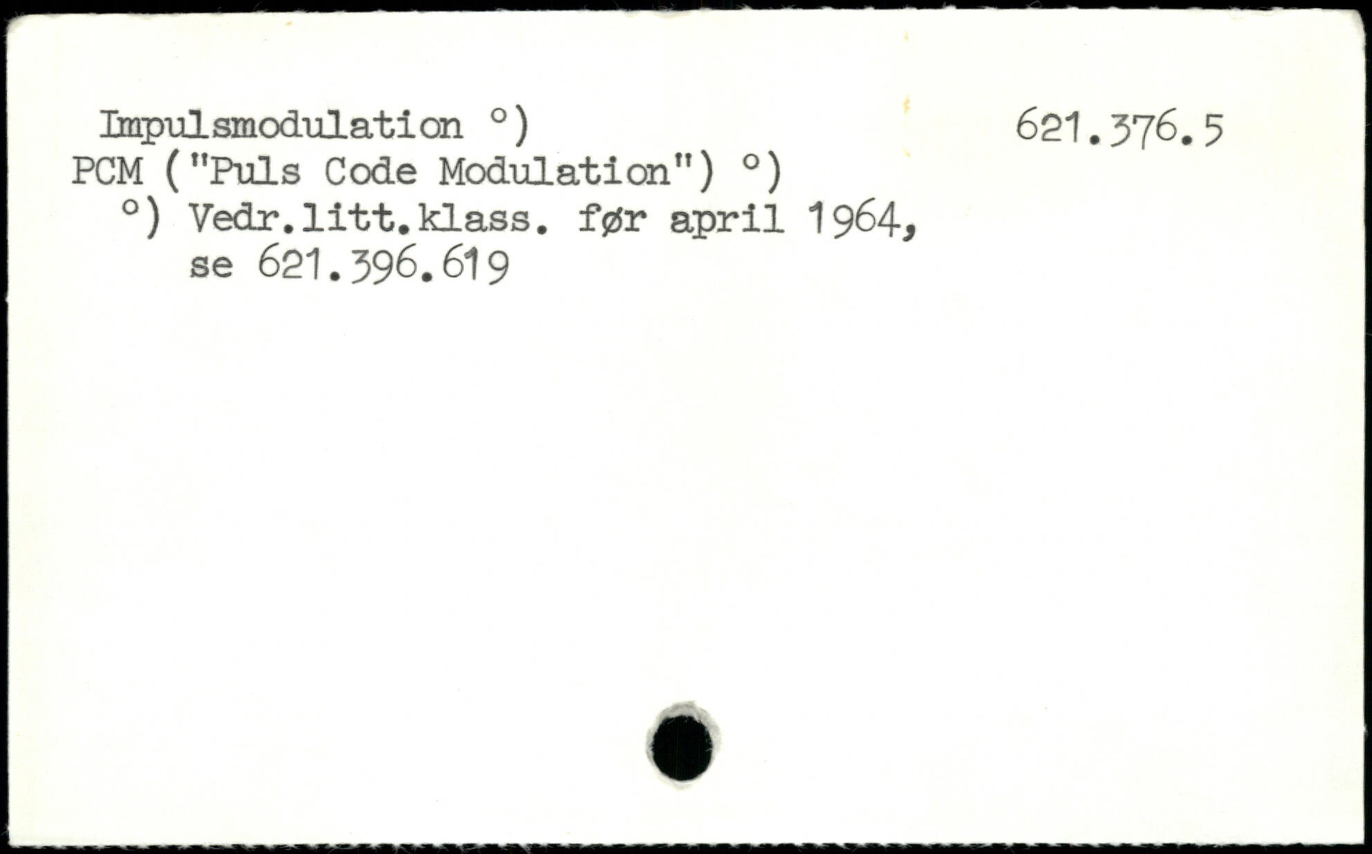 PCM ("Puls Code Modulation") .) .) Vedr.litt.klass. før april 1964. se 621.396.619