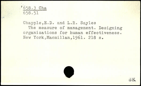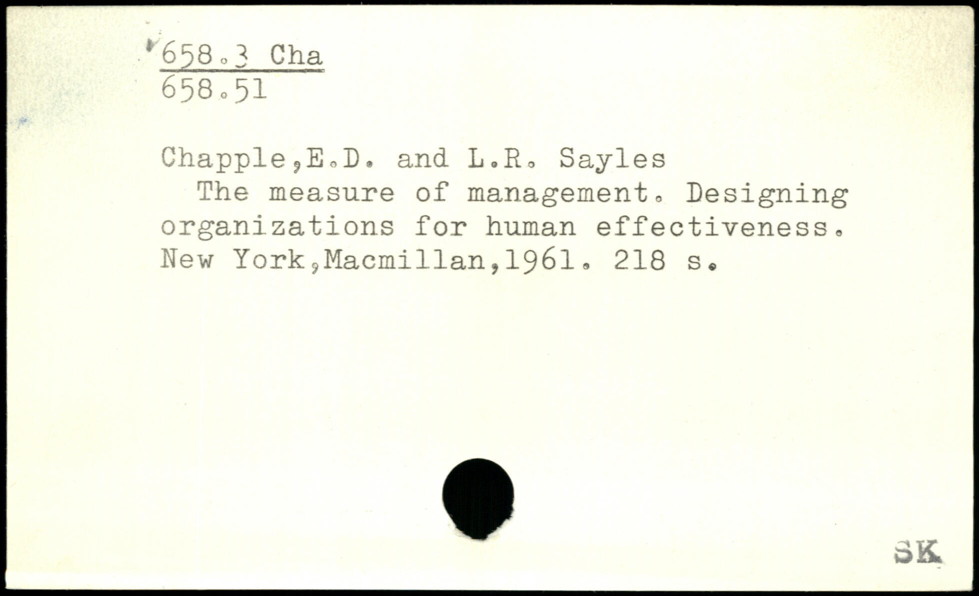 Chapple?E,D. and L.R, Sayles The measure of management, Designing organizations for human effectiveness, New YorkjMacmillan,1961