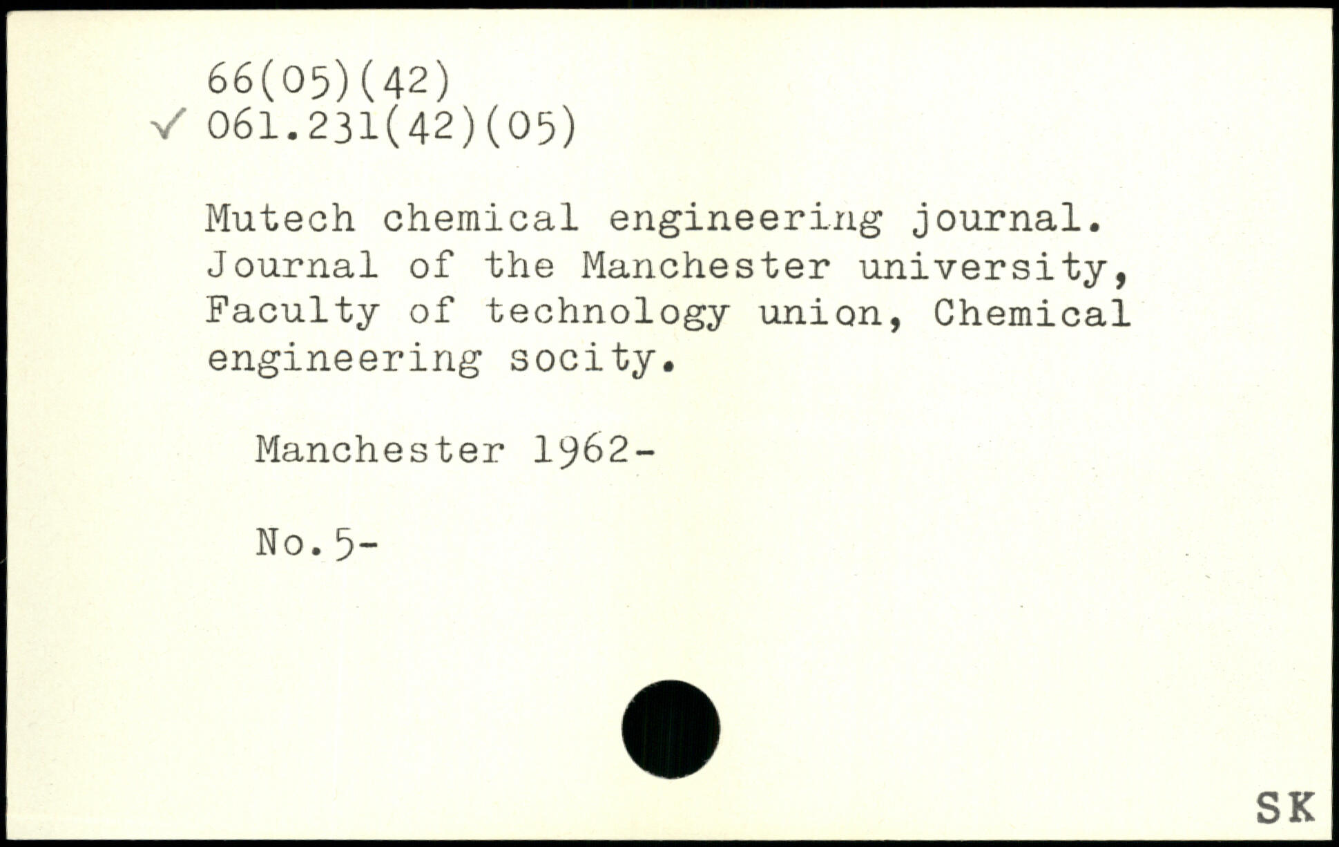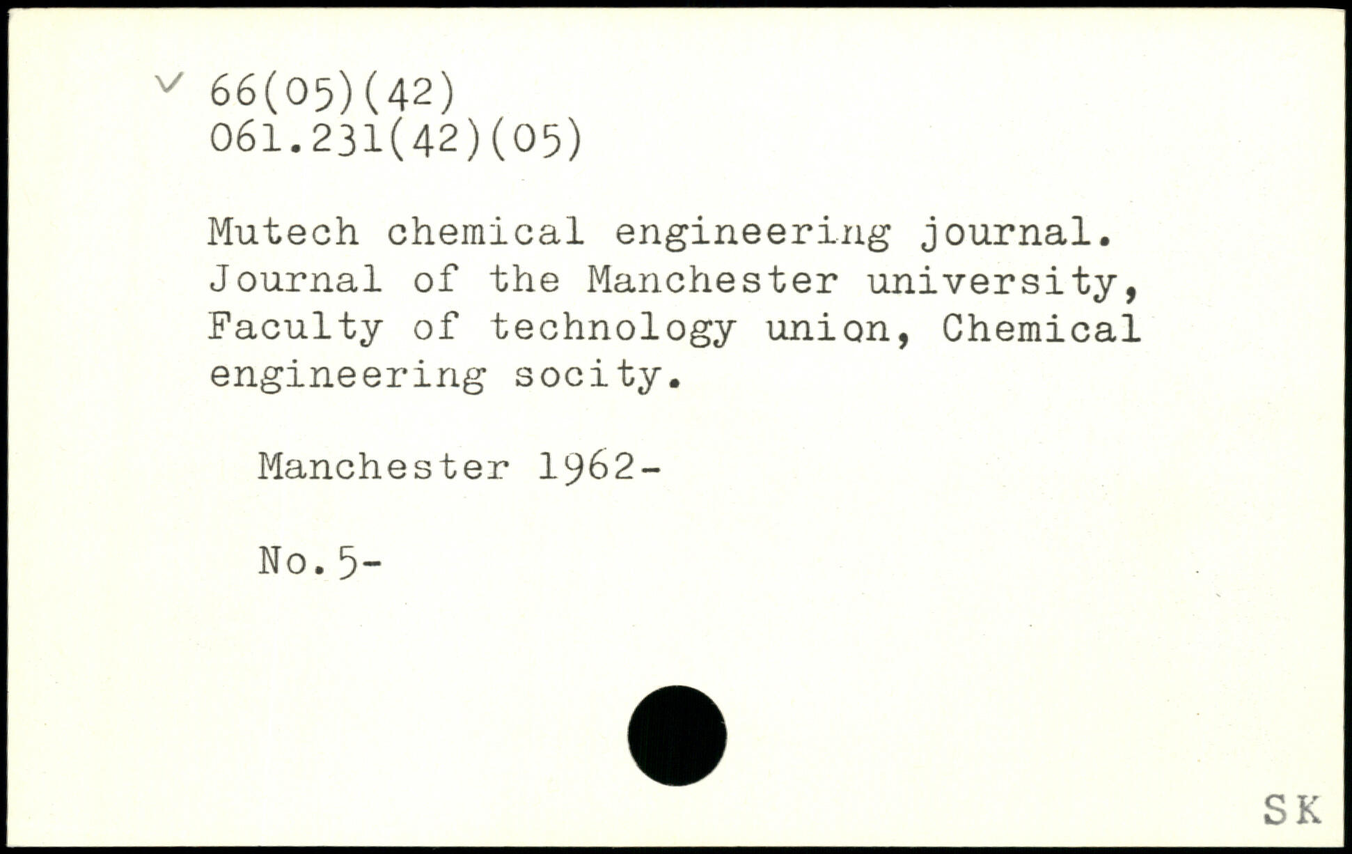 Mutech chemical engineering journal. Journal of the Manchester university, Faculty of technology union, Chemical engineering socity.