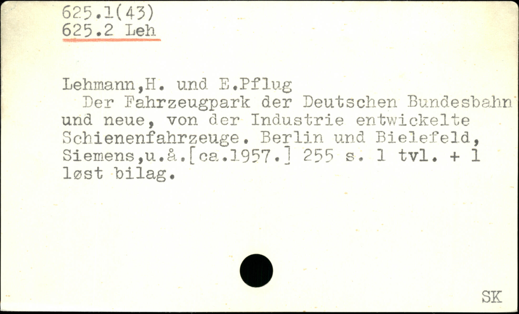 Lehmann,H, und E.Pflug Ler Fahrzeugpark der Deutschen Bundesbahn' und neue, von der Industrie entwickelte Schienenfahrzeuge. Berlin und Bielefeld, Siemens,u.å.[ca.1957.J