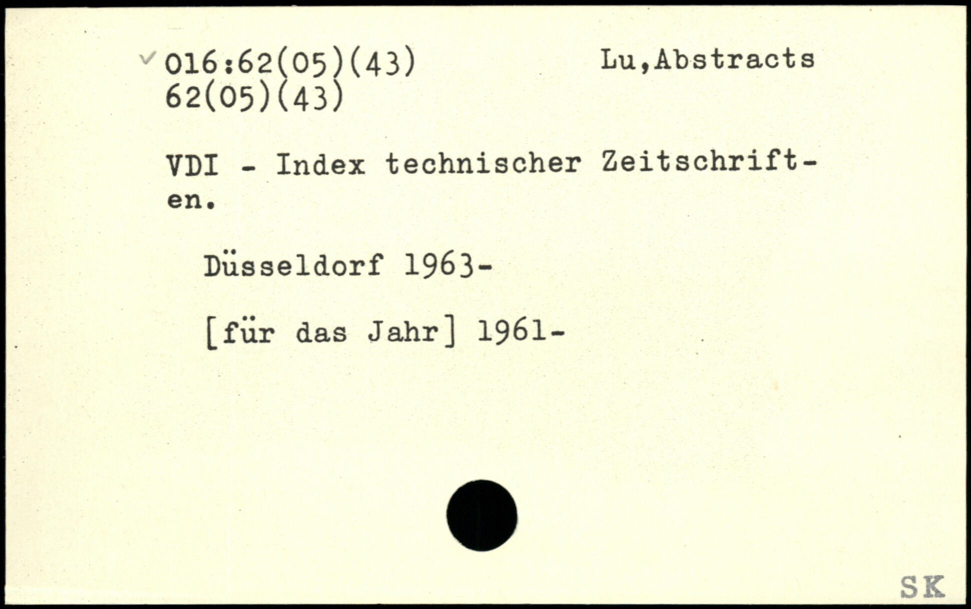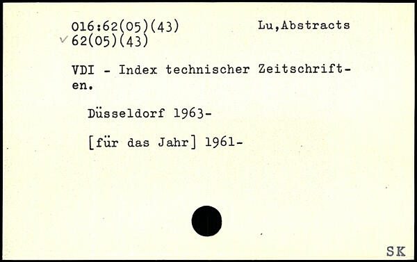 VDI - Index technischer Zeitschriften. Düsseldorf 1963—