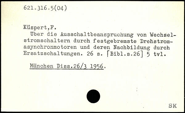 Uber die Ausschaltbeanspruchung von Wechselstromschaltern durch festgebremste Drehstrom-asynchronmotoren und deren Nachbildung durch Ersatzschaltungen.