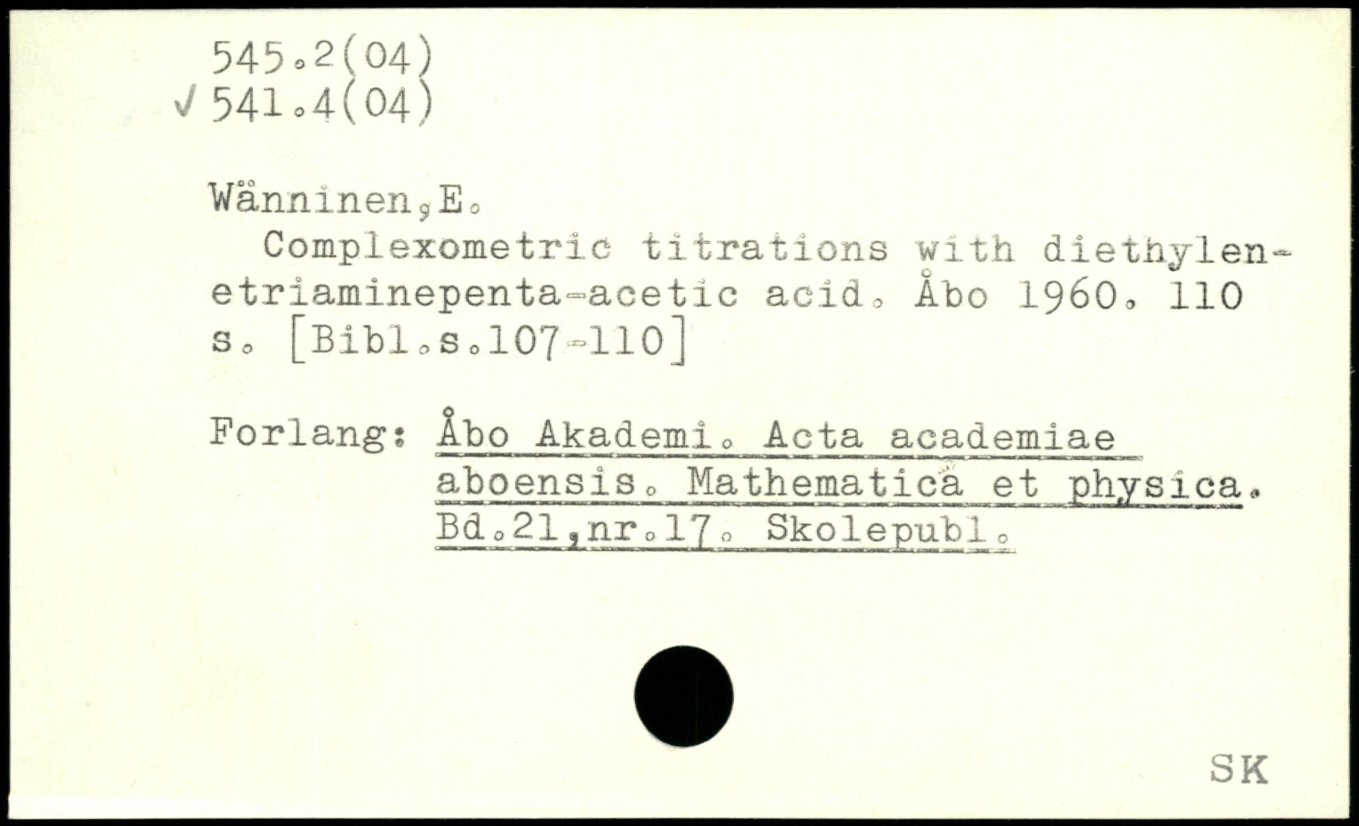 Complexometrie titrations with dietiiylen-etriaminepenta-acetic acid, Âbo 1960