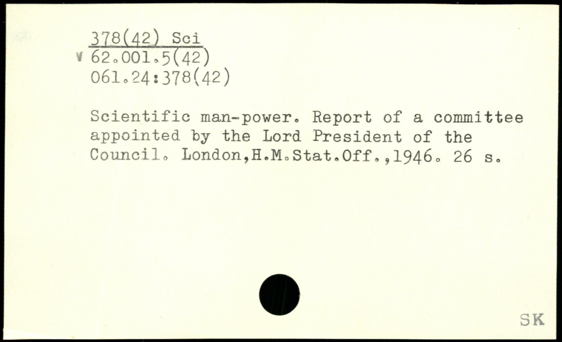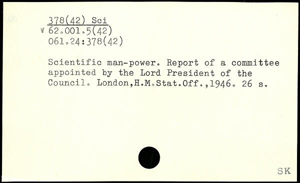 Scientific man-power, Report of a committee appointed by the Lord President of the Council, London,H.MoStat,0ff,,19460