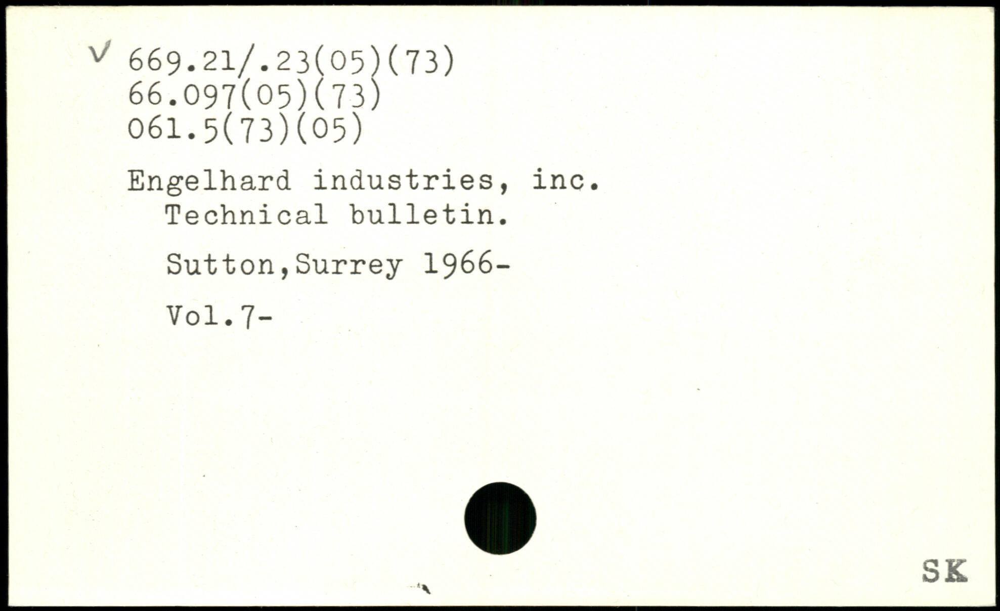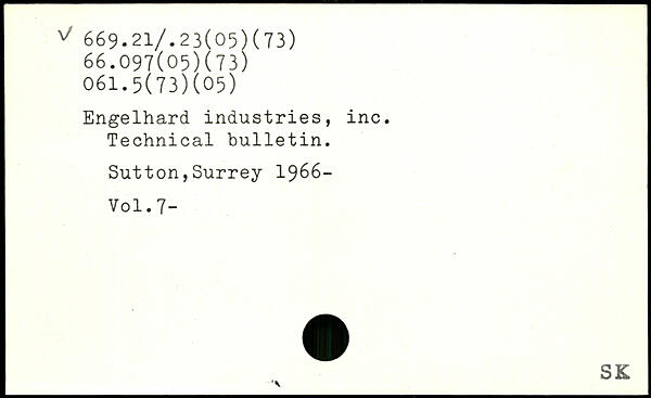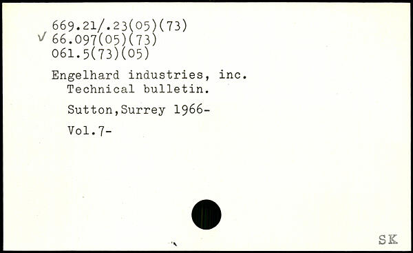 Engelhard industries, inc. Technical bulletin. Sutton,Surrey 1966-