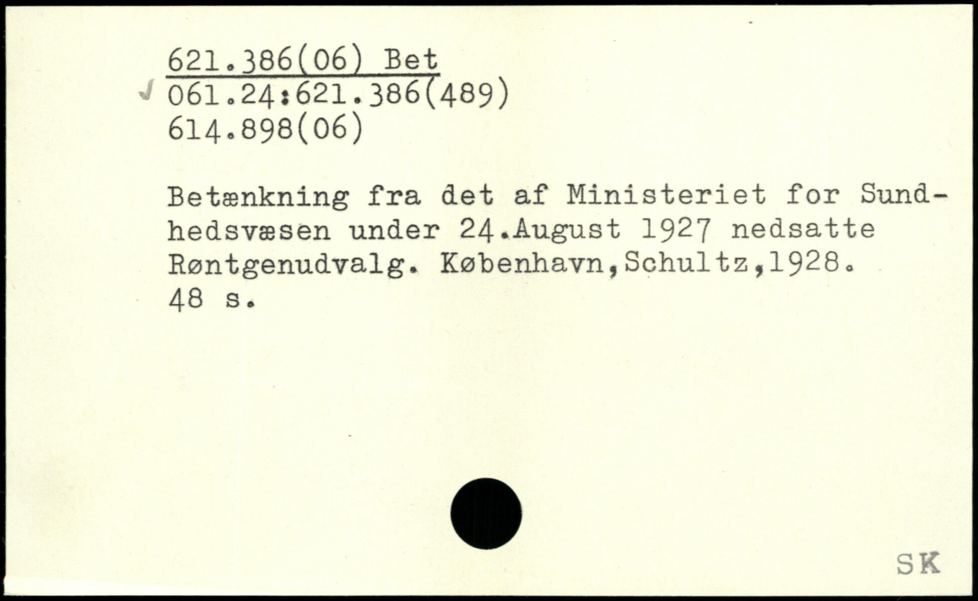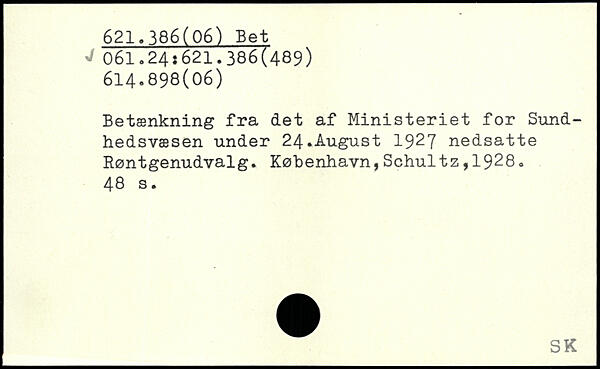 Betænkning fra det af Ministeriet for Sundhedsvæsen under 24.August 1927 nedsatte Røntgenudvalg.