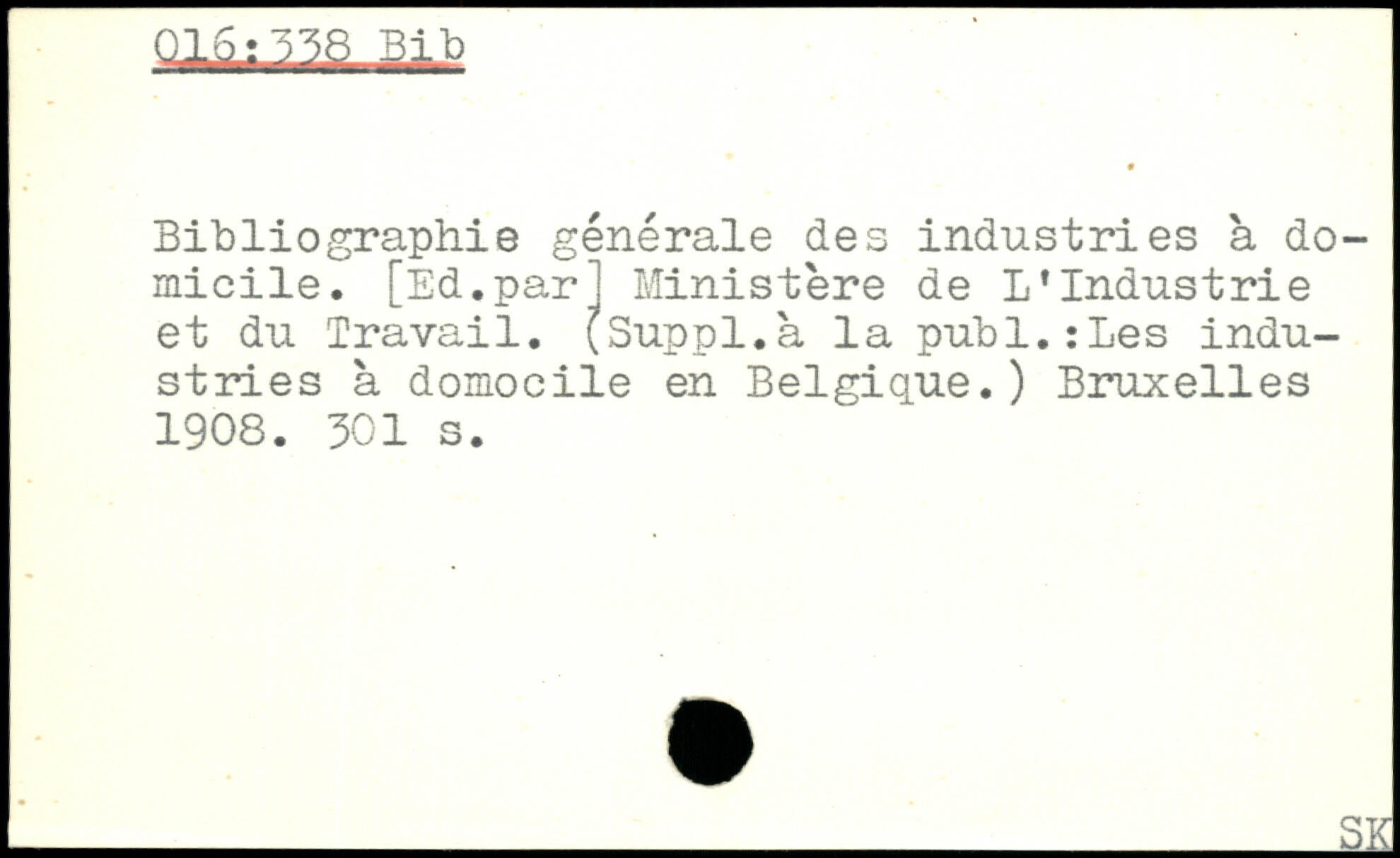 Bibliographie générale des industries à domicile. [Ed.par] Ministère de LfIndustrie et du Travail. (Suppl.à la pub1.:Les industries à domocile en Belgique.)