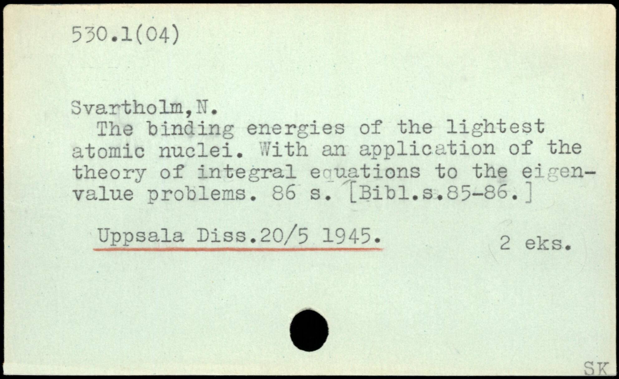 The binding energies of the lightest atomic nuclei. With an application of the theory of integral equations to the eigenvalue problems.