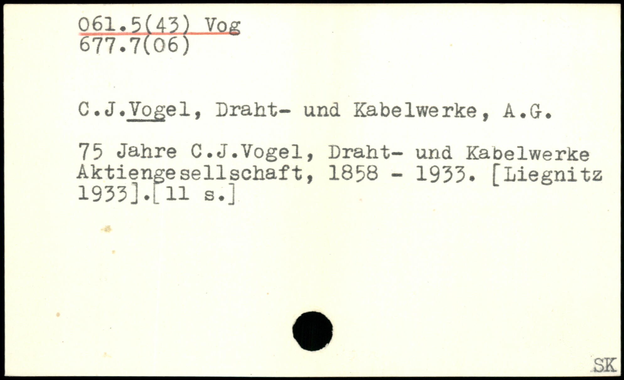 C.J.Vogel, Draht- und Kabelwerke, A.G. 75 Jahre C.J.