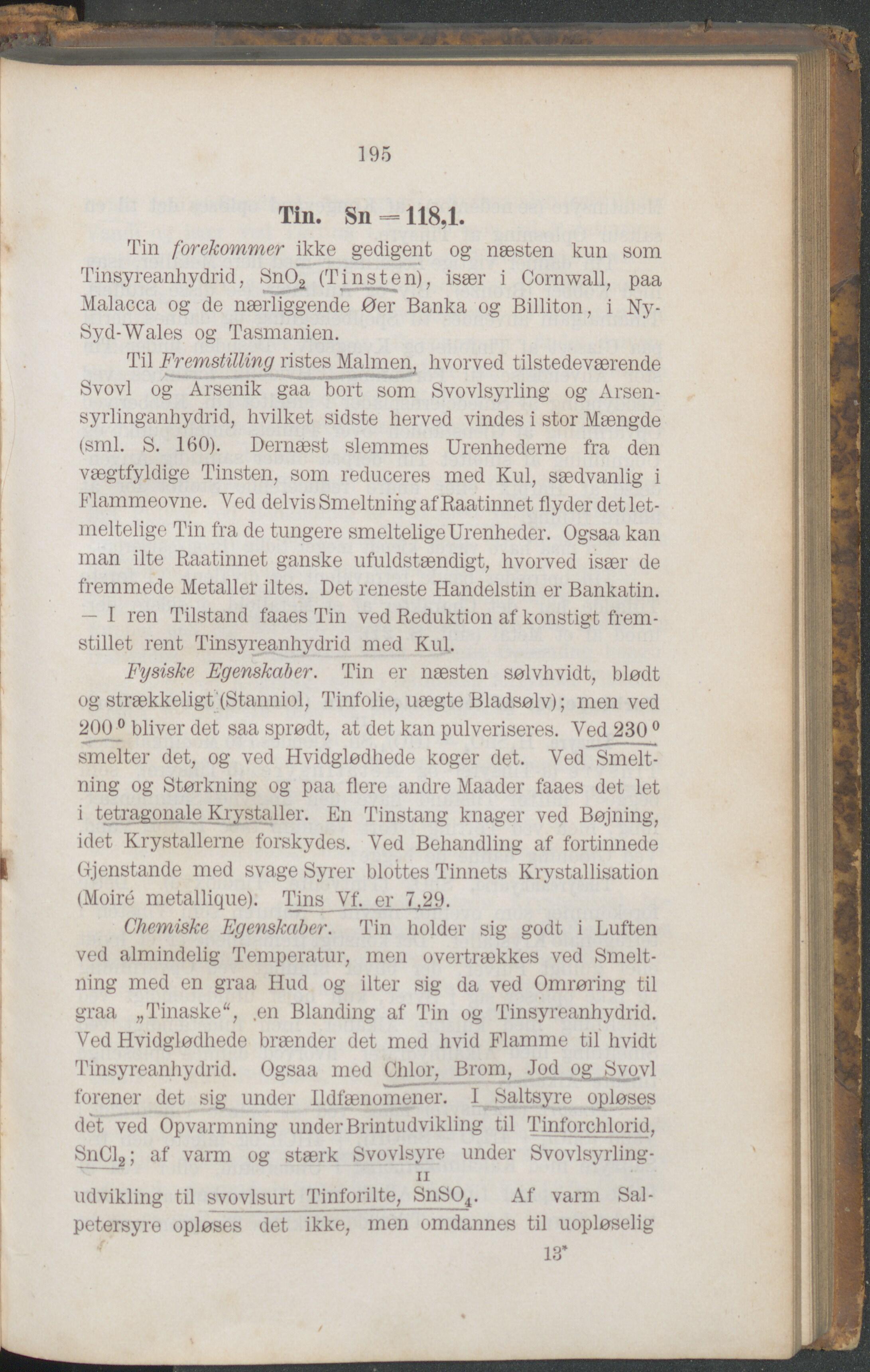Fysiske Fgenskaber. Tin er næsten sølvhvidt, blødt