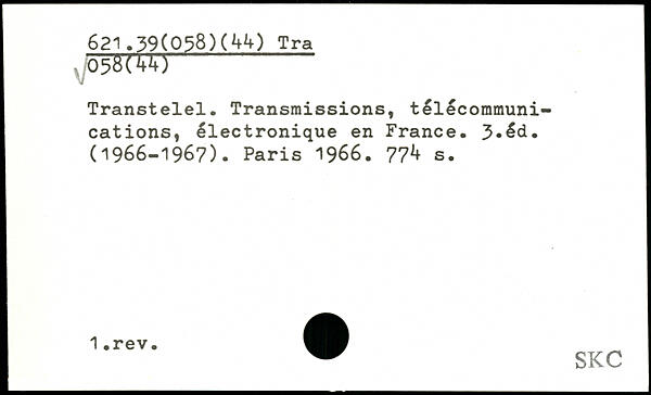 Transtelel. Transmissions, télécommuni-cations, électronique en France. (1966-1967).
